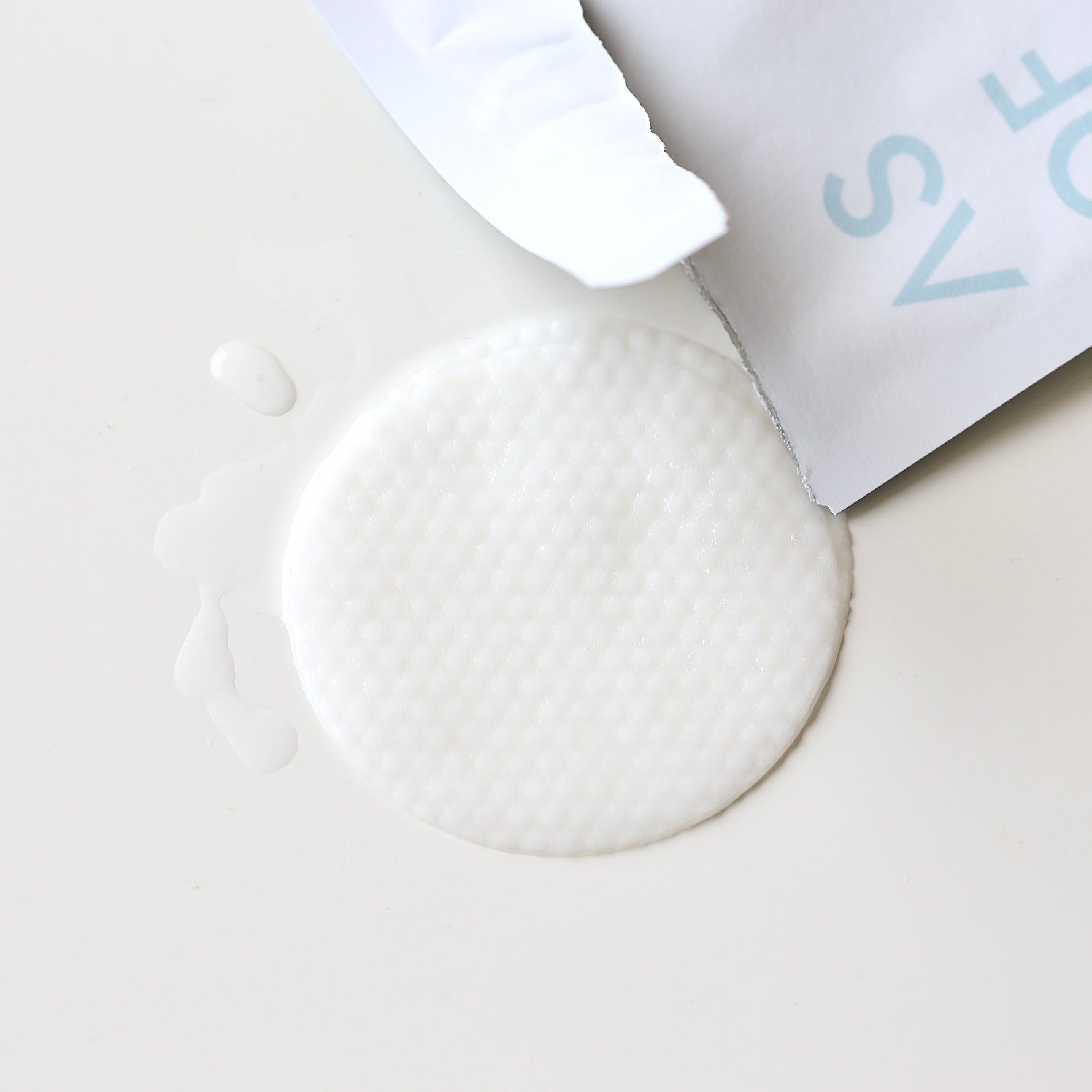 After cleansing, apply textured side of toner pads over the face to eliminate residue. Then, place untextured side of toner pads over the nose for a few minutes to minimize pores.