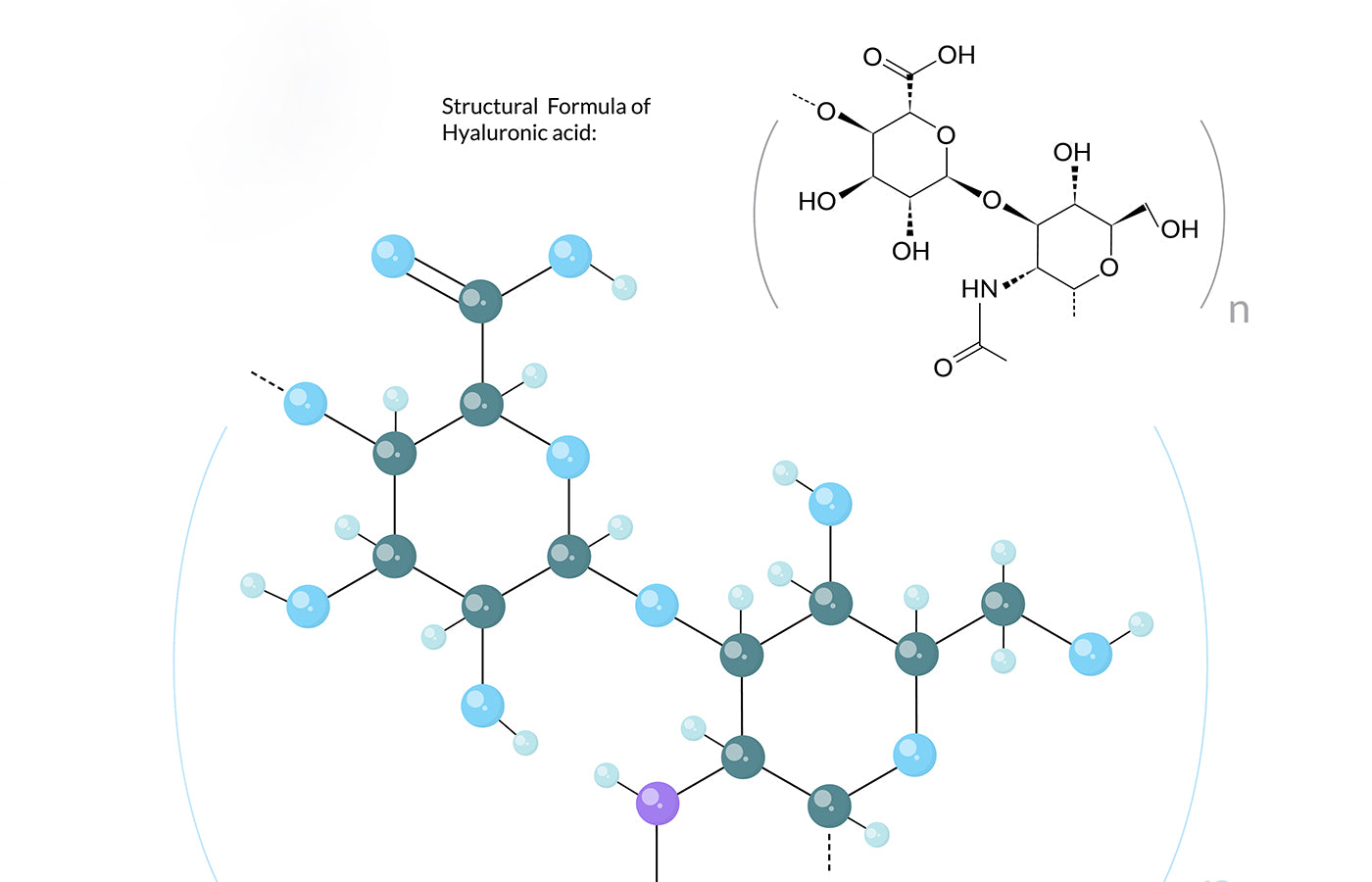 • Holds moisture: HA can hold up to 1,000× its weight in water , acting like a sponge to pull hydration into the skin.